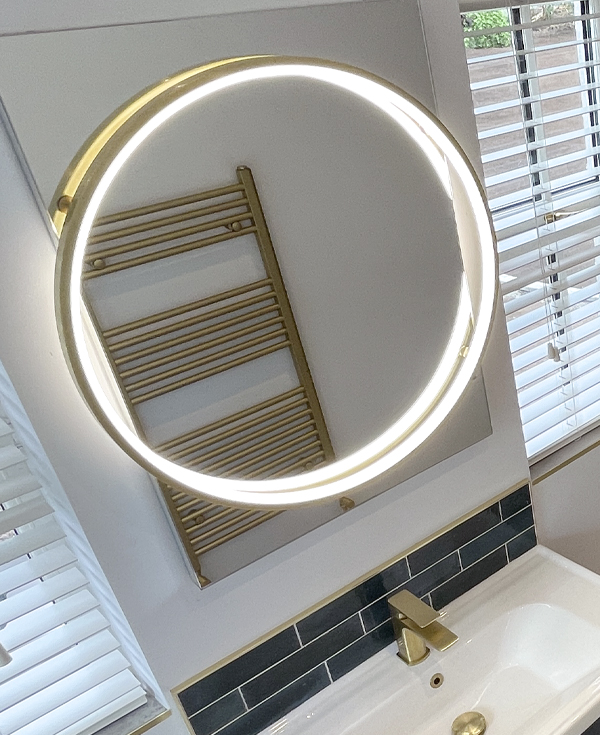 Brushed brass has been used throughout this bathroom to tie everything together.