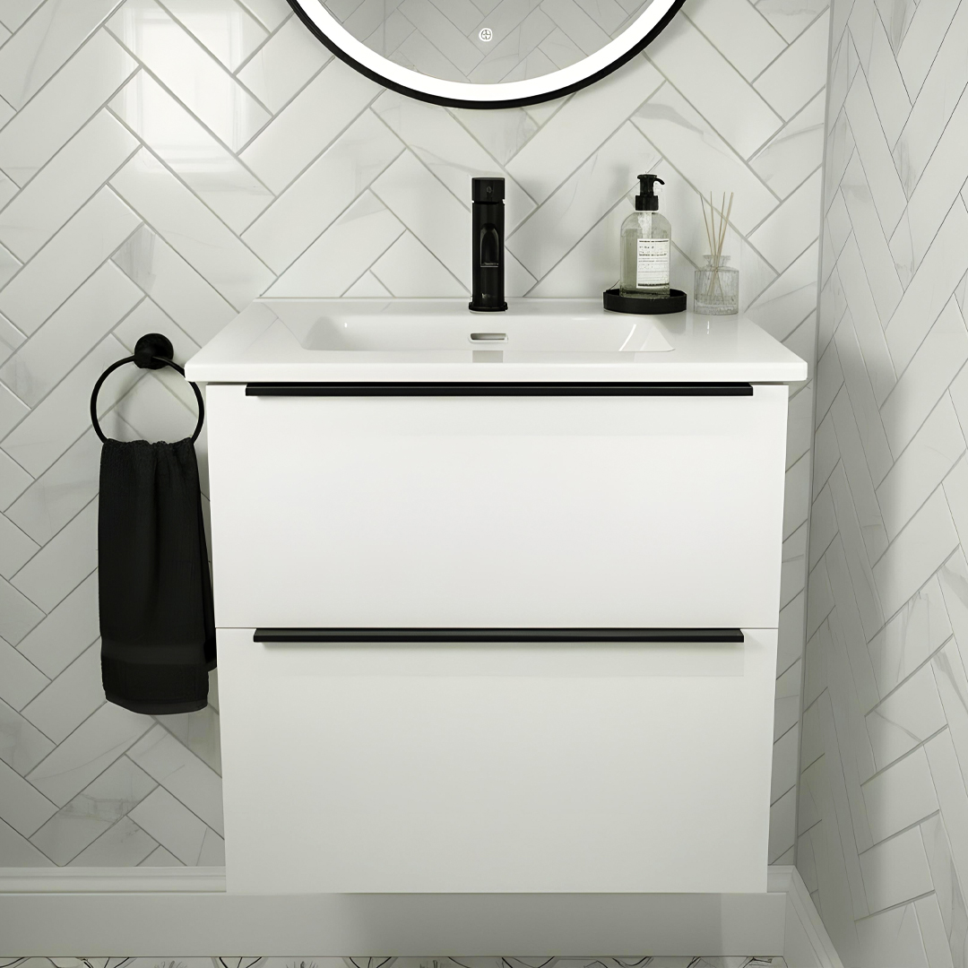 Showcasing the definition of design, our Adare collection allows you to be the designer of your very own bathroom space. Whatever your style preference, the Adare Collection guarantees a chic, striking suite. This range of Wall Hung Vanity Units features soft close drawer runners which will reduce daily wear and tear, alongside ensuring noise is kept to a minimum. The Adare range comes in 2 versions the original & a compact version which is ideal for smaller spaces. The Adare original comes as standard in a Natural Oak finish with a choice of black or ceramic basins. There are also 2 sizes to choose from. The Adare compact is available in 3 colour variations & with a ceramic basin. All units have a choice of handles to match up with your brassware & accessories.