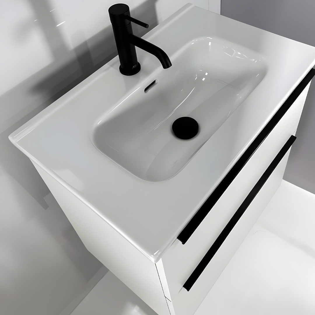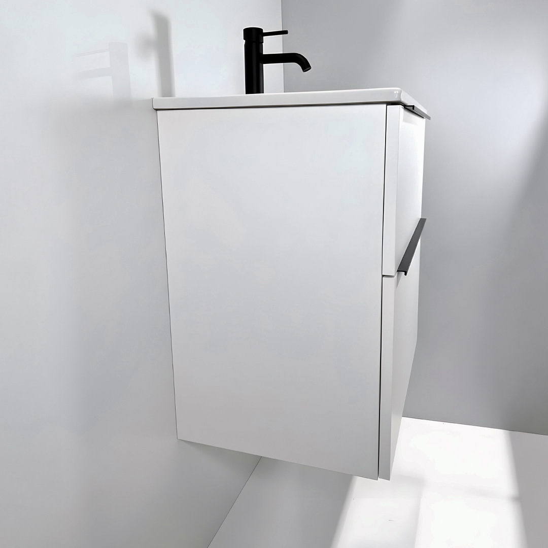 Adare 600mm Compact Wall Hung Vanity Unit In Gloss White With Ceramic Basin