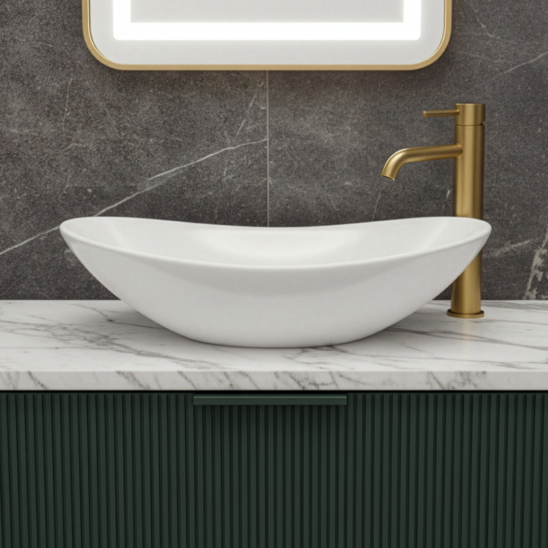 Crafted with a sleek, minimalist silhouette, the Calisto’s generous 605mm width offers practical washing space while maintaining a light, sculptural appearance on any vanity top. The gently tapered design softens the overall look, making it ideal for modern, boutique-inspired bathrooms.