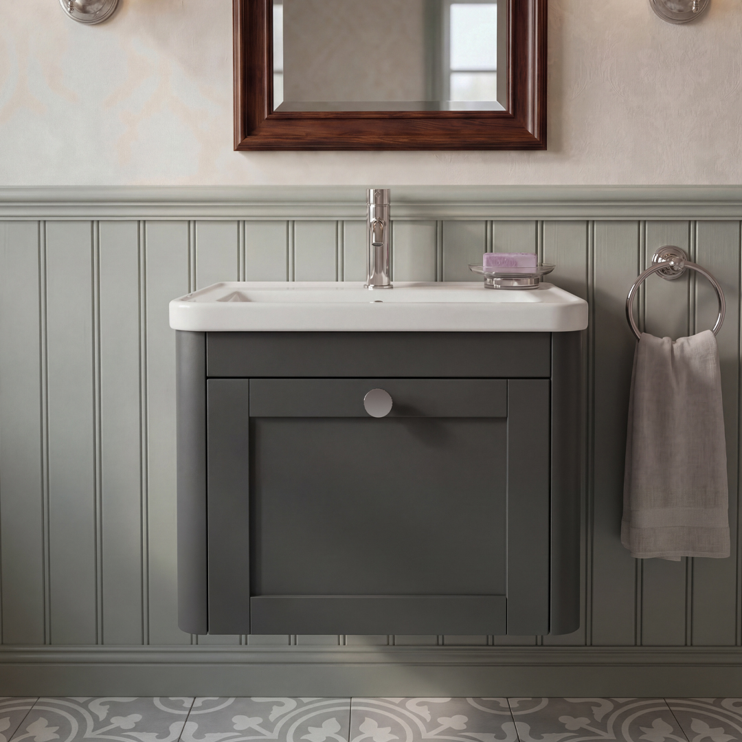 The Cambridge Collection’s appeal lies not only in its versatile sizes but also in its exquisite color palette. Opt for a subtle, muted tone with our chalk white, anchor grey or stone grey finishes, ideal for creating a serene and tranquil bathroom environment.
