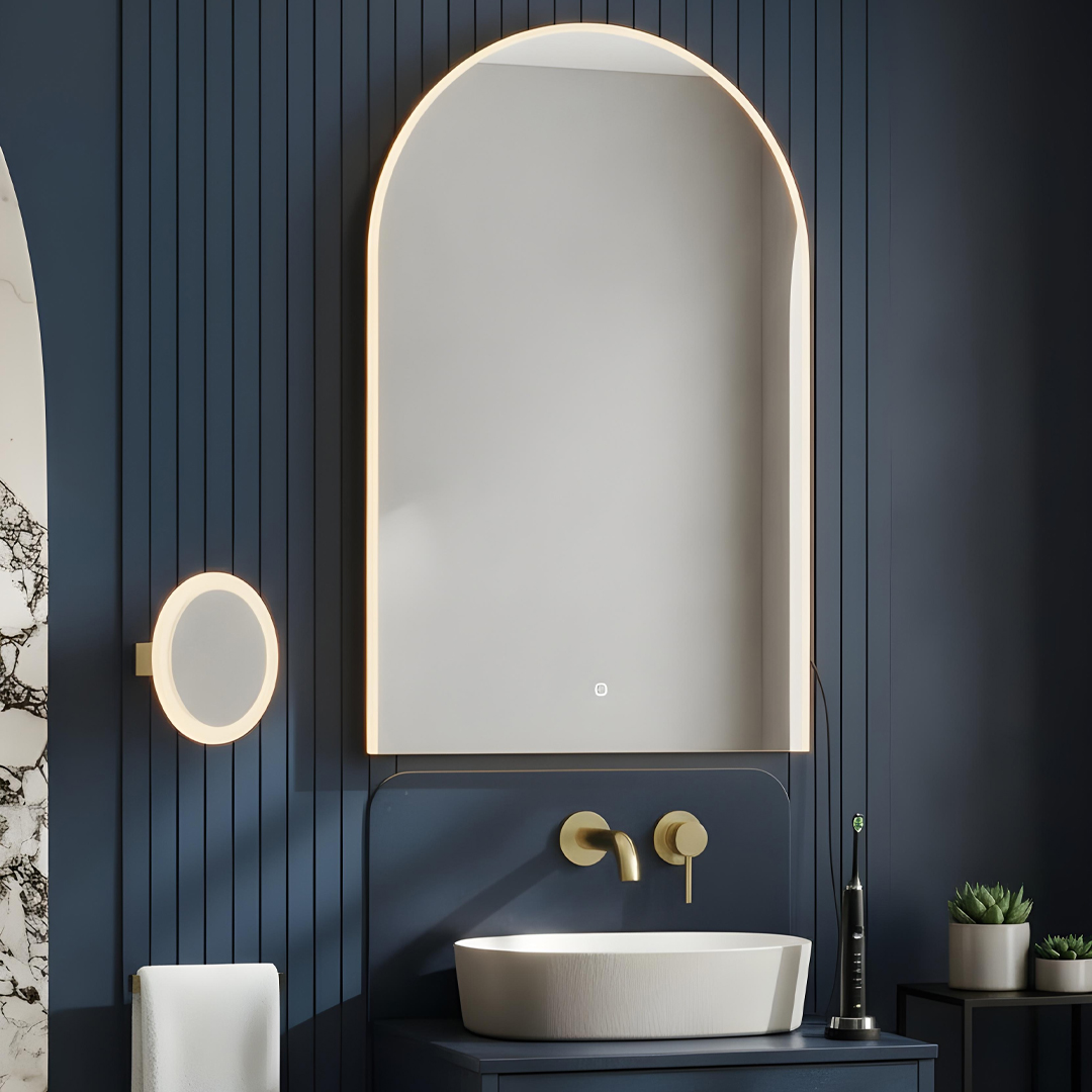 A beautiful arched mirror, the Crescent Mirror features a graceful curved design that brings a classic yet contemporary feel to the bathroom. Seamlessly transition between crisp, cool and calming warm LED illumination to set the perfect ambience for any moment. With a built-in two-pin charging socket, improved heated pad technology, ambient under-mirror lighting and touch-free operation, the Crescent Mirror is more than just a reflection — it’s a statement of modern convenience and elegance.