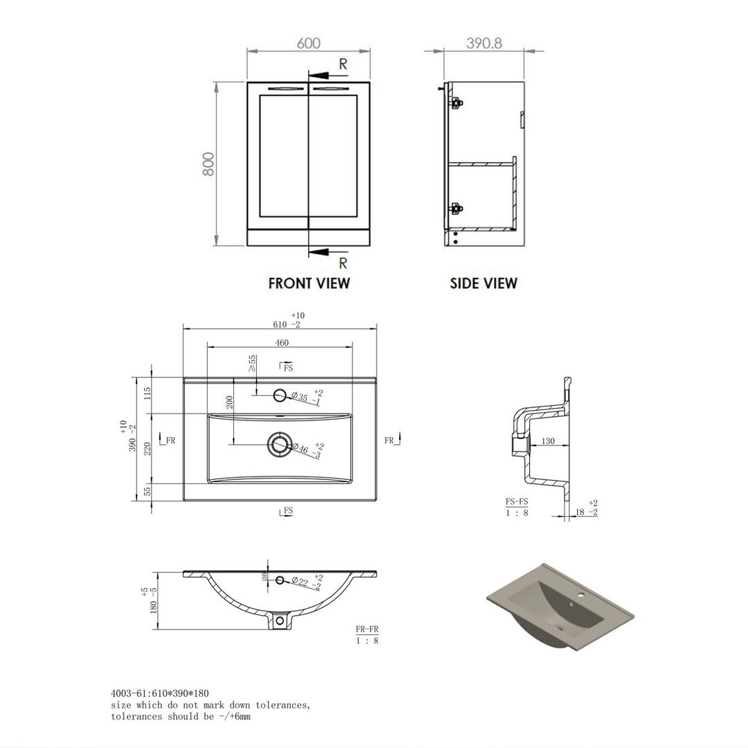 - Dimensions: 600mm –H 618 x W 815 x D 395mm, 800mm – H 818 x W 815 x D 395mm