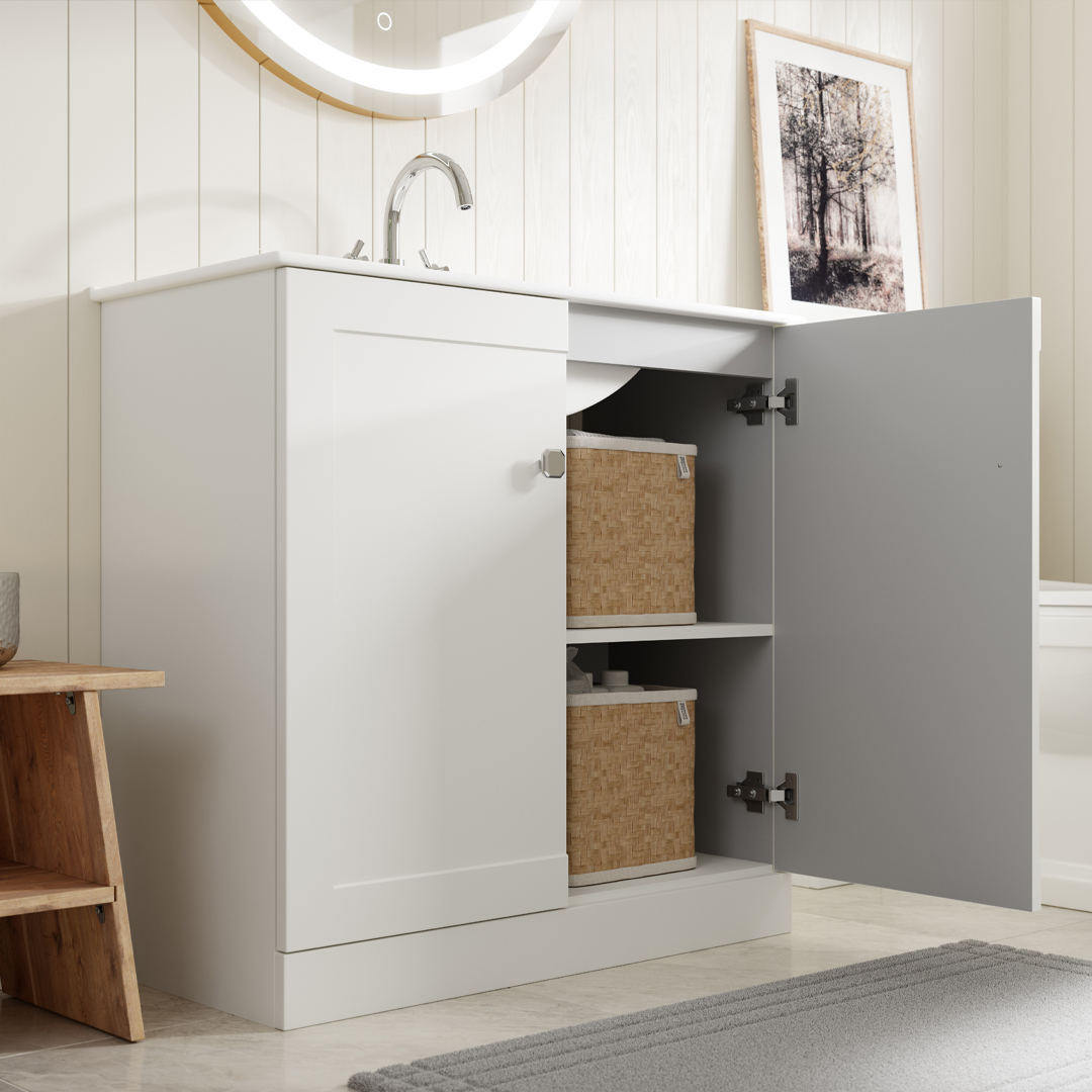 The Eden vanity unit offers a refined balance of tradition and modernity. Featuring a simple shaker-inspired design, it is enhanced by a smooth matt finish in two on-trend colours – the calming Matt Reed Green and the soft, sophisticated Matt Peony. This versatile style works effortlessly in both contemporary and classic settings, making it an ideal choice for a wide range of interiors.