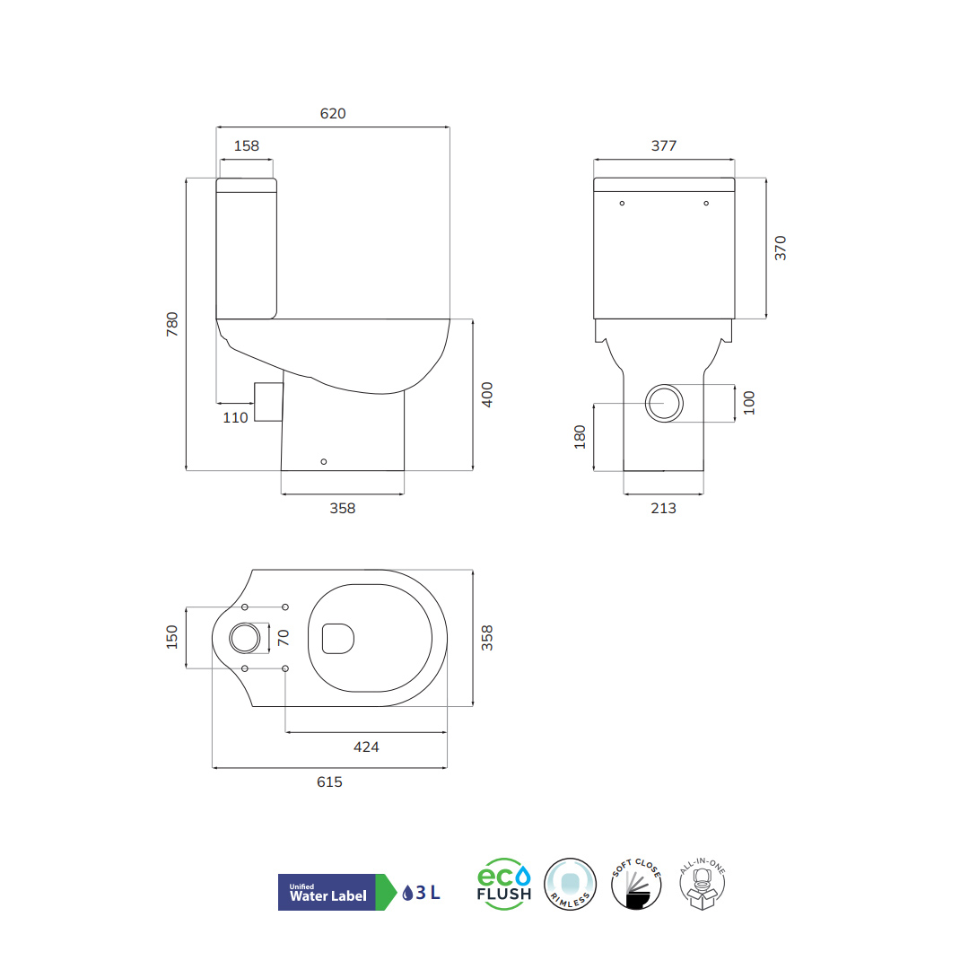 Manufactured from high-quality vitreous china, the Eden toilet is built to withstand daily use while maintaining a clean and contemporary finish. Its close coupled design keeps the overall look neat and compact, fitting well in a wide range of bathroom layouts.