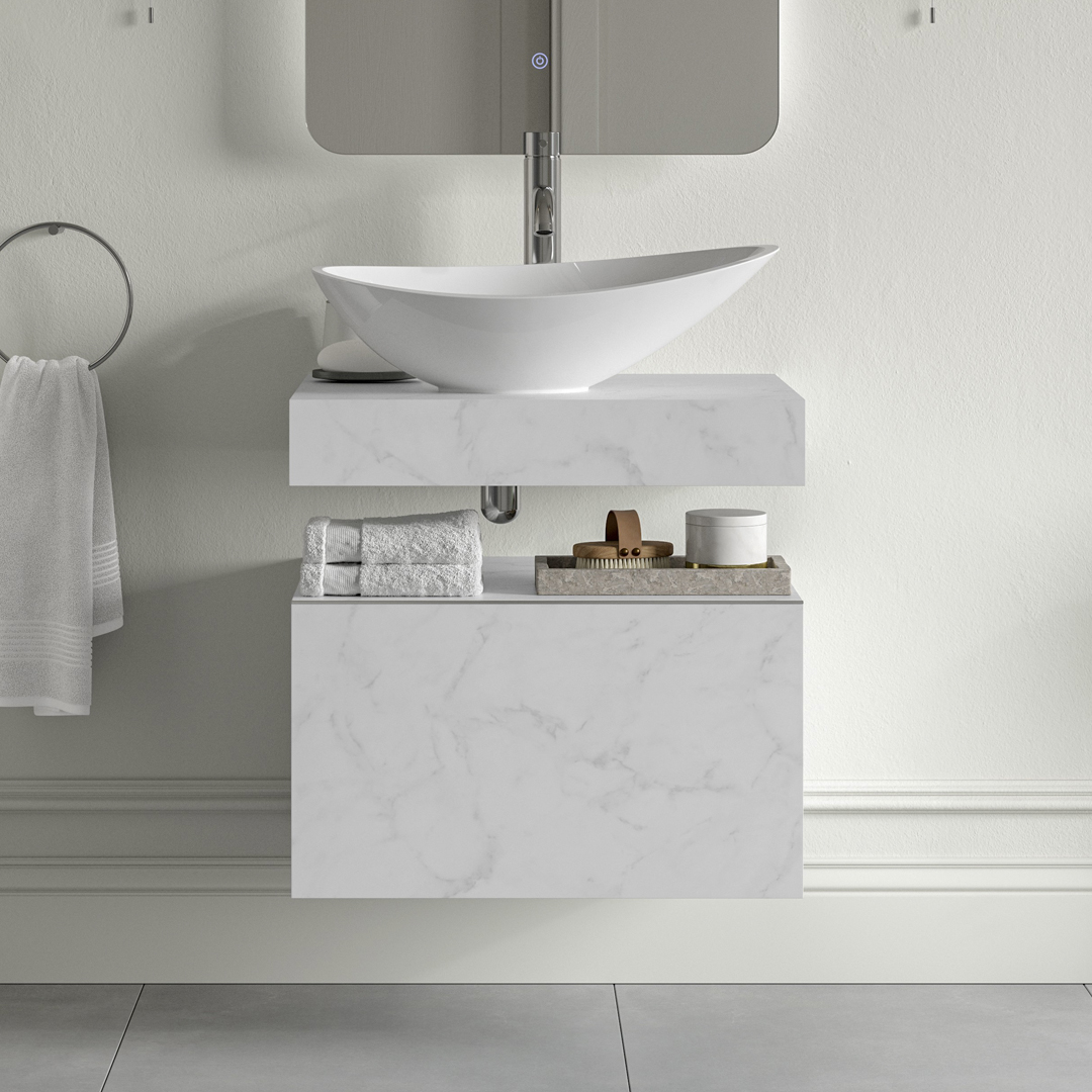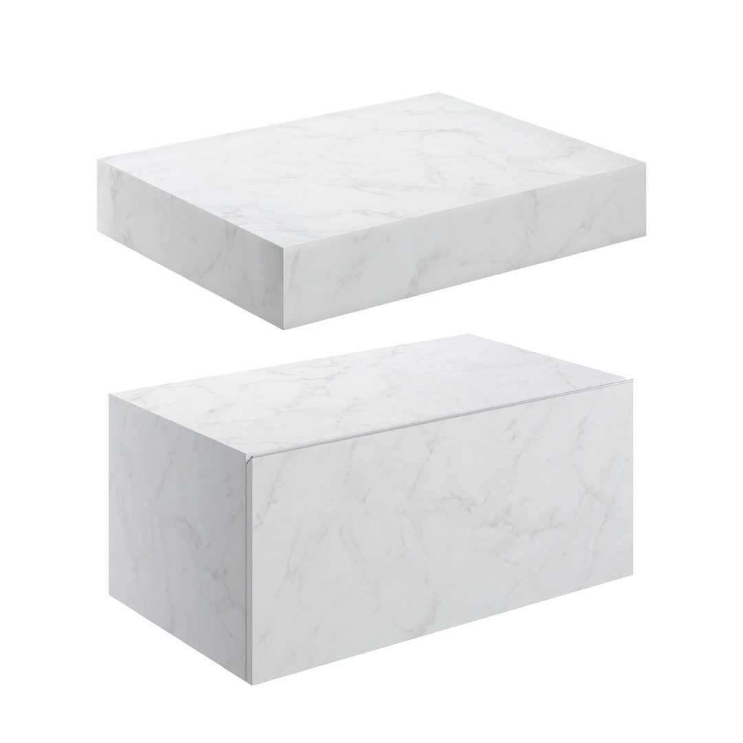 Forma Wall Hung Shelf & Storage Drawer White Marble