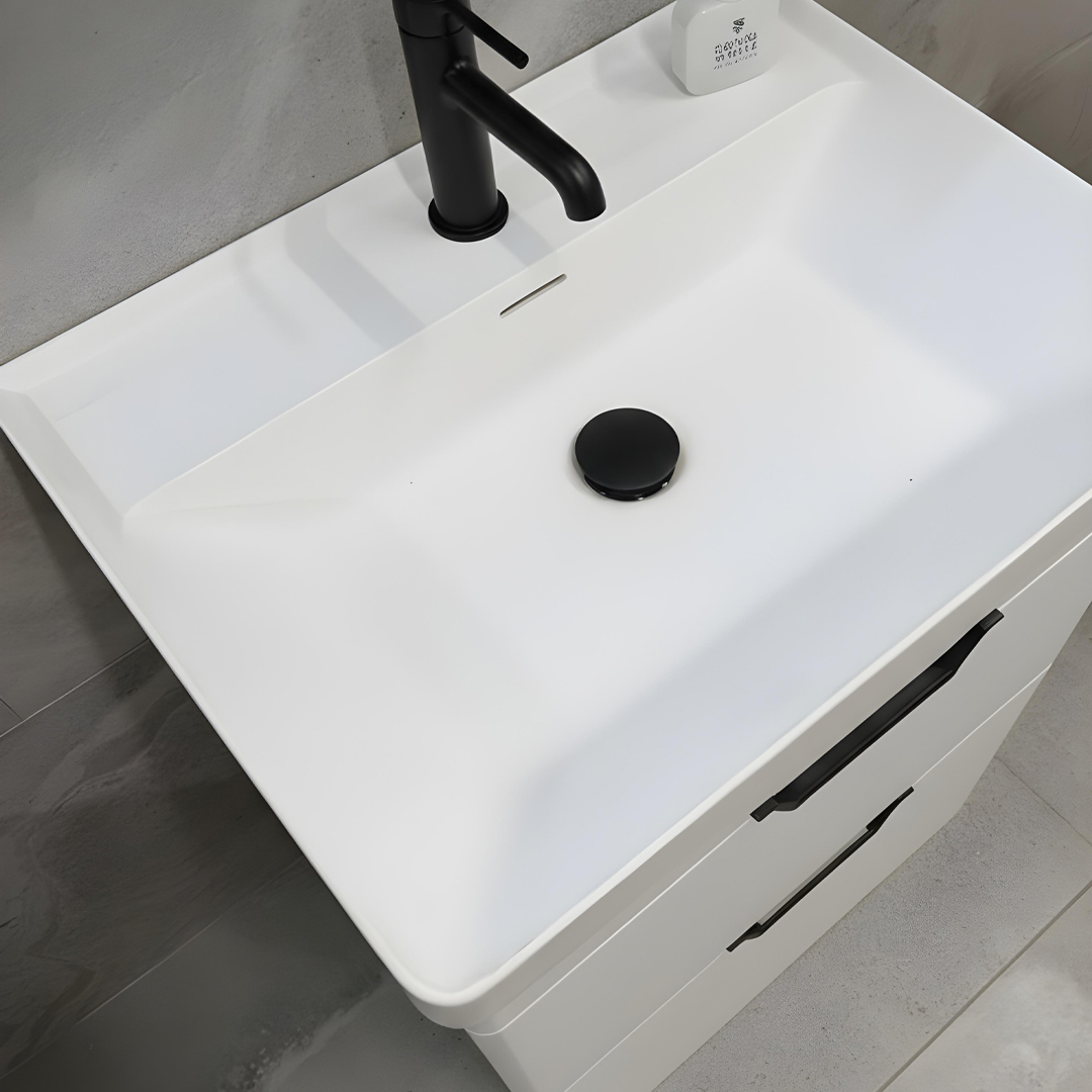 Supplied complete with a white ceramic basin, the unit offers a seamless, finished appearance while allowing flexibility when choosing compatible taps and waste (sold separately). The soft-close doors provide smooth, quiet operation and practical storage for everyday bathroom essentials.