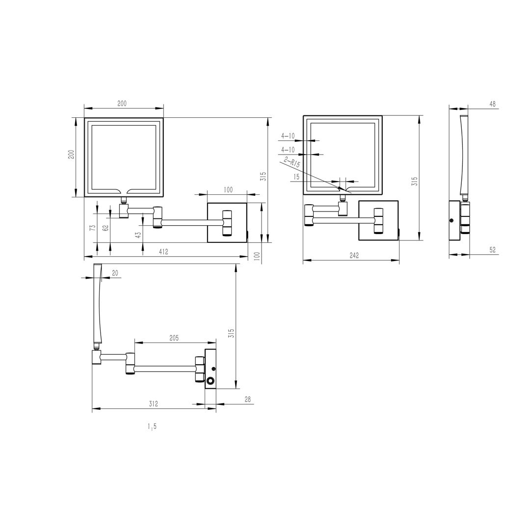 This chrome wall-mounted cosmetic mirror features a plain mirror and a 5x magnifying side, ideal for close-up grooming and makeup. Its double swing arms allow easy positioning, while the front edge-lit design provides bright, cool 6500K lighting. Touch-button operated and IP44 rated, it’s suited for bathroom use and measures H 240 x W 315 x D 52mm. Comes with a 2-year manufacturer’s guarantee.