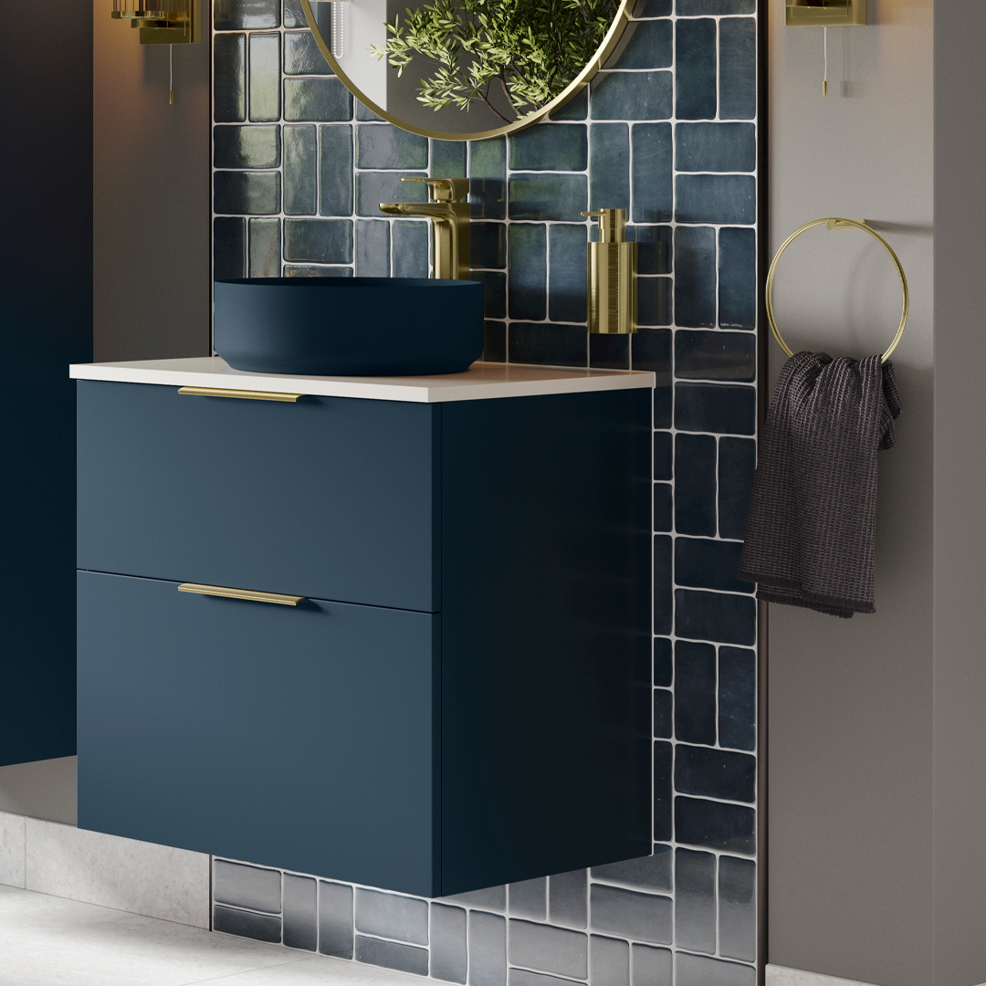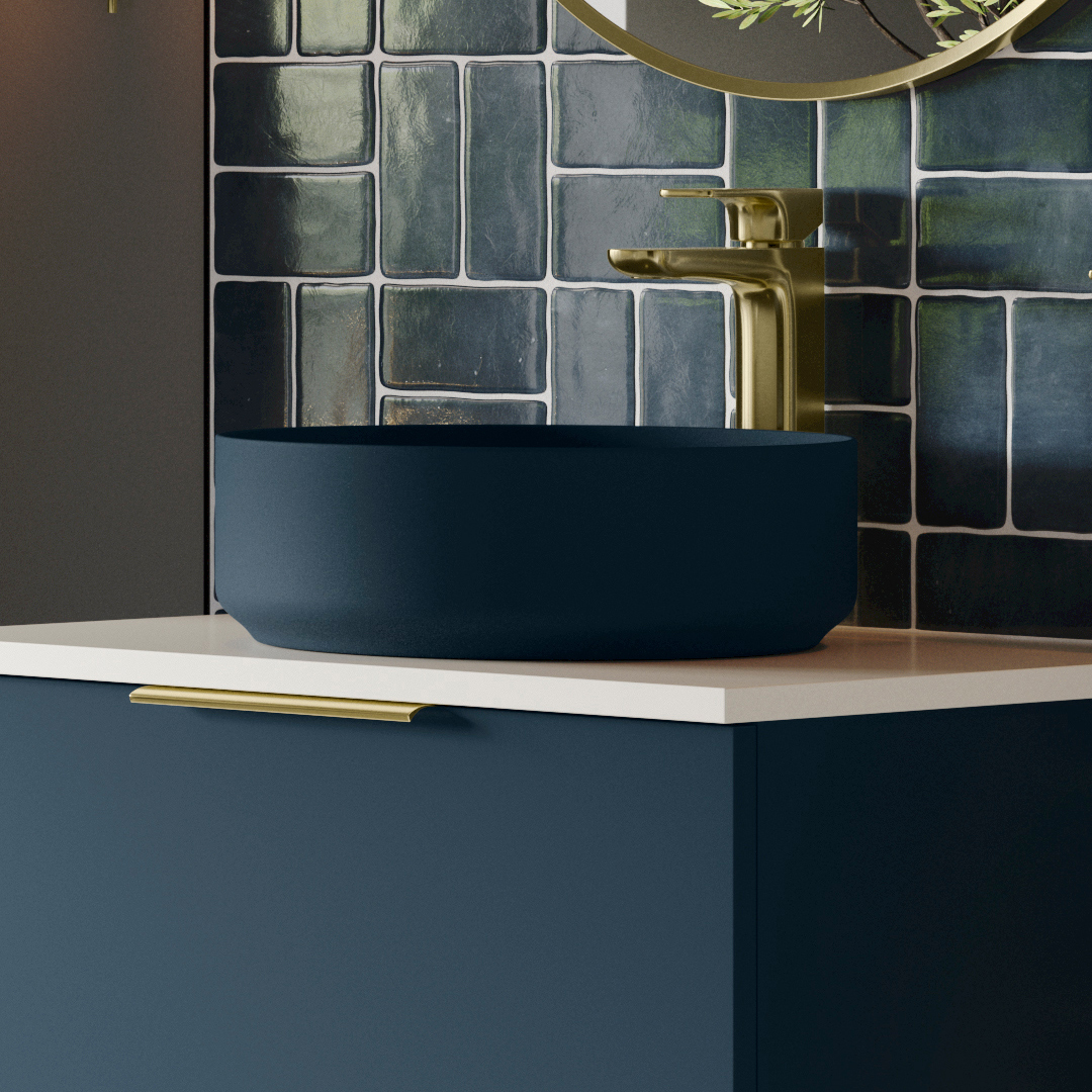Ibiza 355mm Ceramic Round Washbowl & Waste – Matt Deep Blue