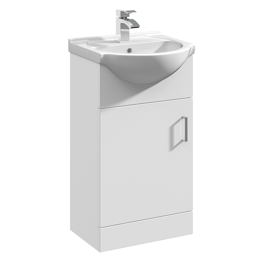 With an integral basin and ample space for all your essentials, this elegantly crafted vanity unit from our Monaco white collection is a great way to combine both style and storage. This stunning furniture unit comes with a high gloss white finish that simply wipes clean. Ideal for a variety of spaces, we stock 2 widths – 450mm which is perfect for cloakroom bathrooms & 550mm. The soft close doors feature solid engineered wood front and modern chrome handles.
