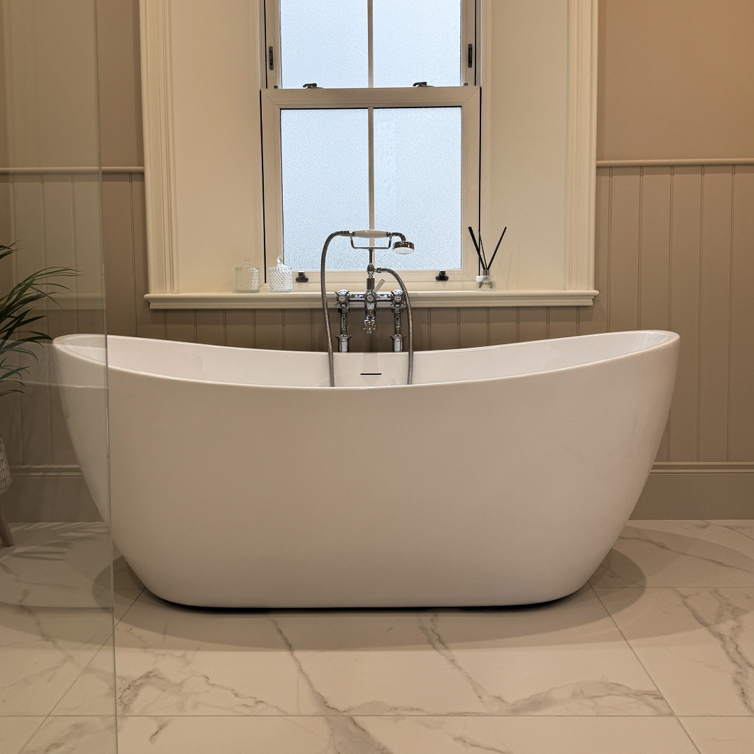The Luna Freestanding Bath from Livari is ideal for those wanting to make a style statement. Its acrylic construction makes it lighter than cast iron or steel baths and its generous size provides a luxurious bathing experience. The Luna is certain to become an eye-catching centrepiece within your space.