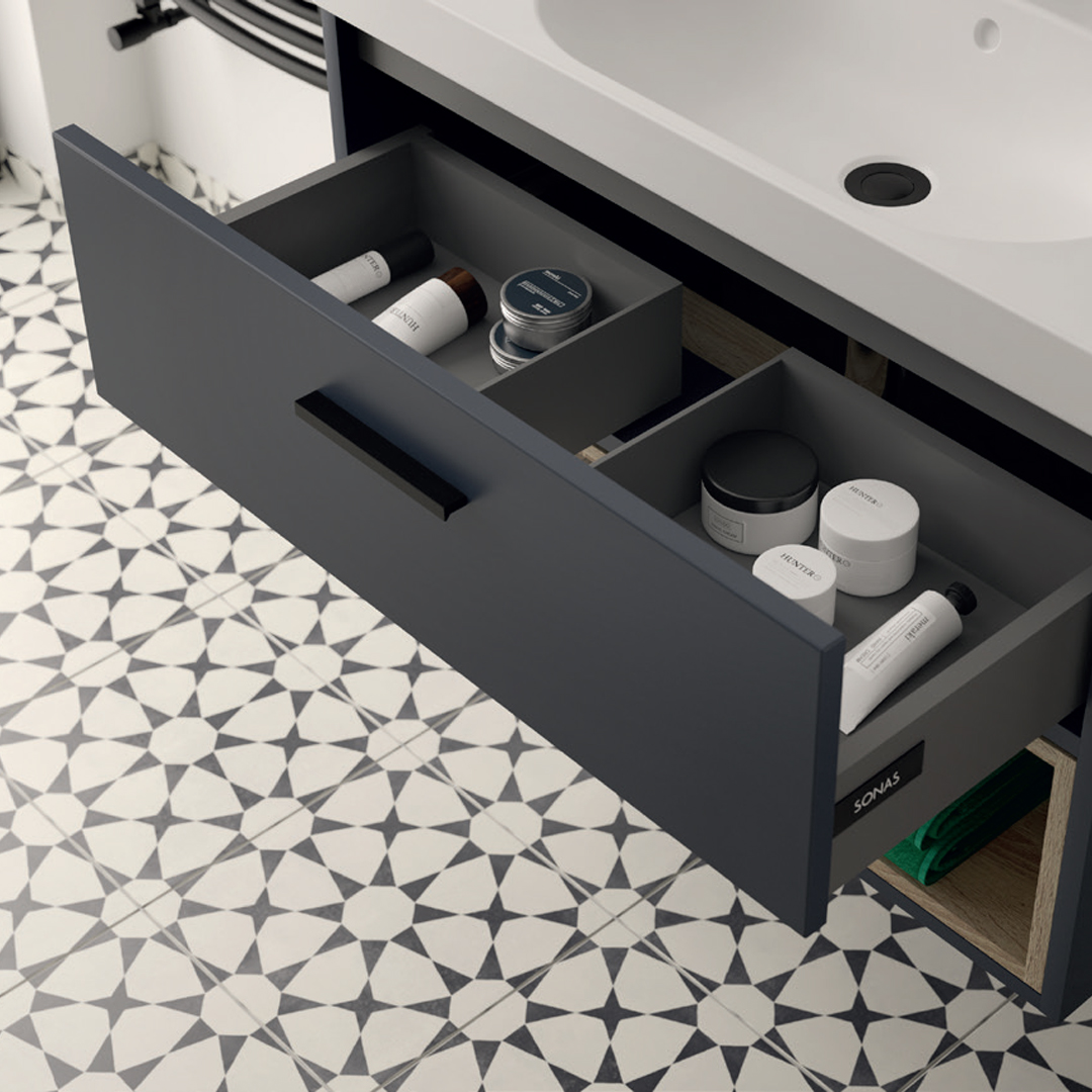 A luxurious and contemporary Scandinavian range of units from Sonas Bathrooms, offered in multiple styles and size. The Malmo range offers a mix of matt textures and choice of stylish handles which have been crafted to bring a touch of class to your bathroom. The open shelves offers a style statement whilst providing you with immediate access to your bathroom necessities.