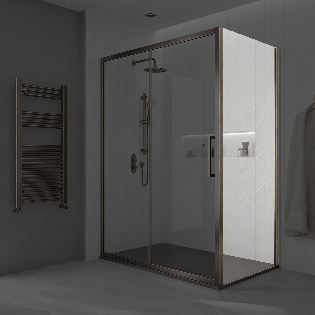 Sonas Bathrooms have carved a name for their self in the manufacture of creating products that have continually moved bathroom design forward. The company has now come up with an attractive Side Panel for their Aspect Brushed Nickel Shower Enclosure Range. The reversible panel, which can be installed left or right-hand side, has a protective Pro-Clean coating for preventing build-up of limescale, soap scum, stains and dirt, for ease of cleaning. Having a Brushed Nickel frame with profile cover caps, its quick fixing wall profile mechanism enables speedy and easy installation.