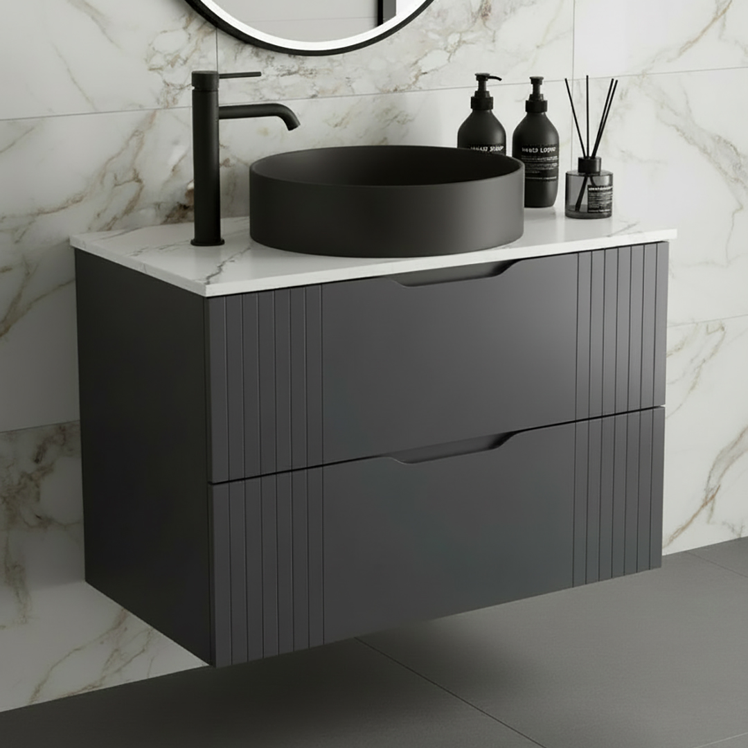 Introducing the stunning new Varys range of wall hung vanity units. A piece of furniture that is sure to be the focal point in any bathroom. This new collection of Wall Hung units features sleek lines down either side and is available in 3 modern finishes.? The Varys modern Wall Hung Vanity Unit comes complete with worktop, basin is purchased separately. Multiple sizes also available to choose from. More info on this Unit: