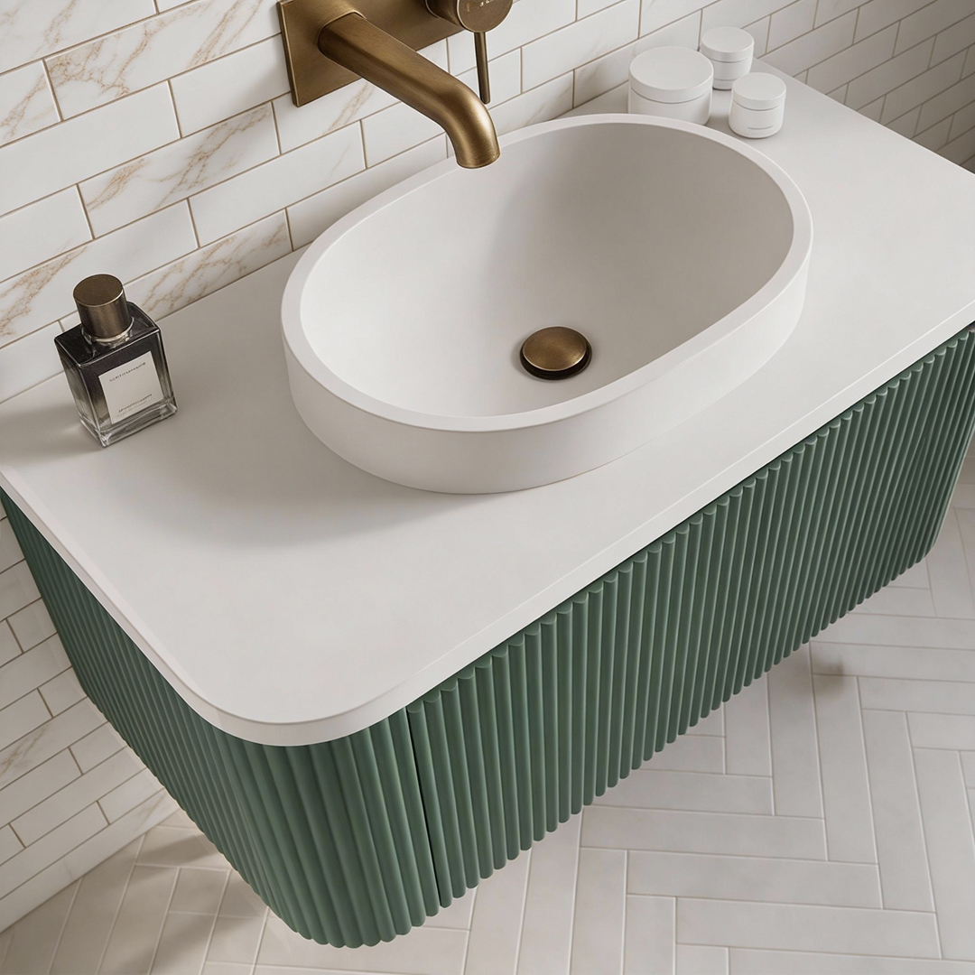 The Virage wall hung vanity unit is designed for bathrooms that prioritise clean lines, texture, and a considered finish. Featuring a beautifully fluted front and a fully integrated basin, Virage achieves the appearance of a countertop and basin in one seamless piece—creating a streamlined, uncluttered look.