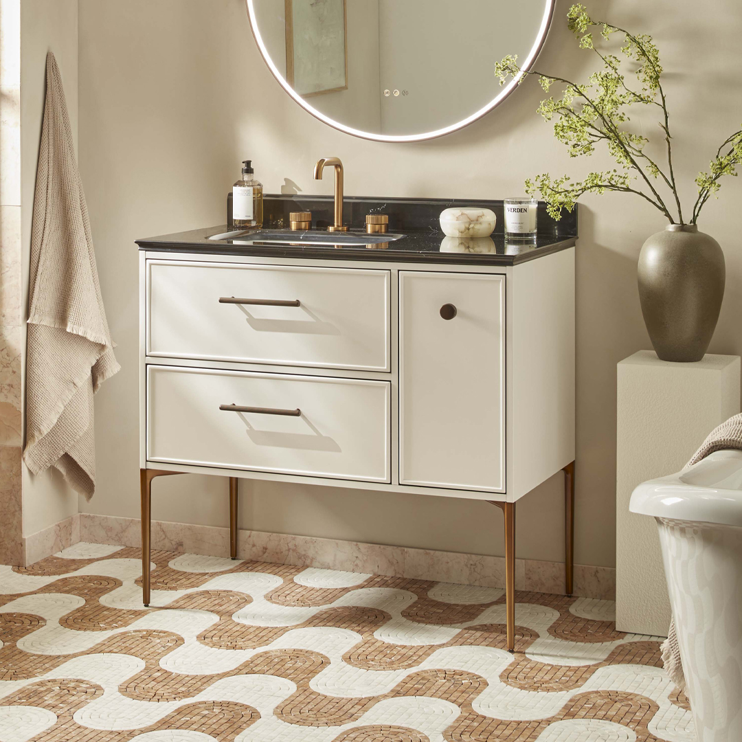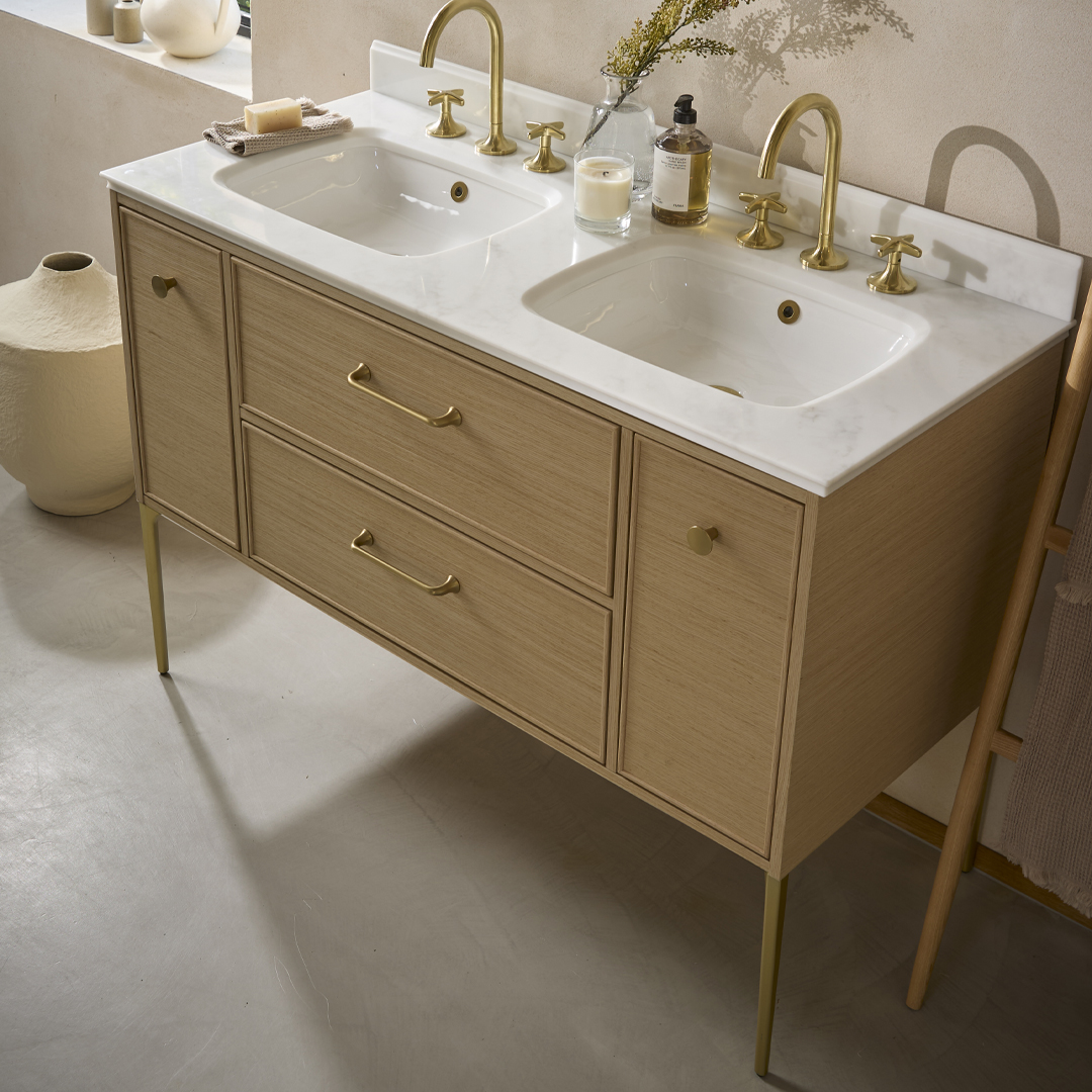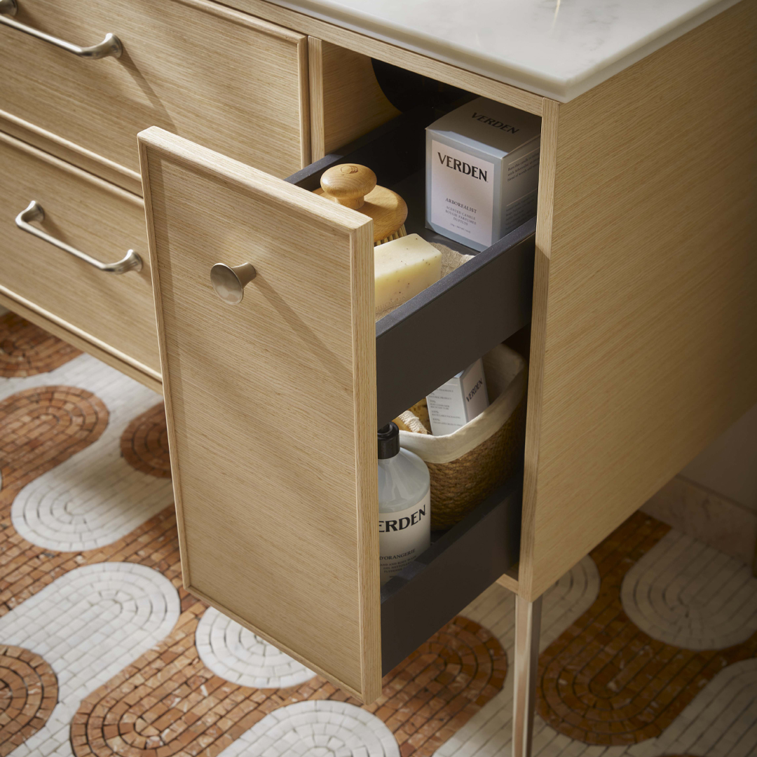 The Walcot range from Roper Rhodes brings an understated elegance and refined quality to your bathroom. With Hettich soft close hinges and runners, as well as three veneer finishes to chose from, you can transform your bathroom space into a luxurious and calming environment with ease. As part of the Walcot collection, you can create a coordinated space with carefully curated basins, taps, mirrors and more, ensuring a consistent aesthetic throughout.