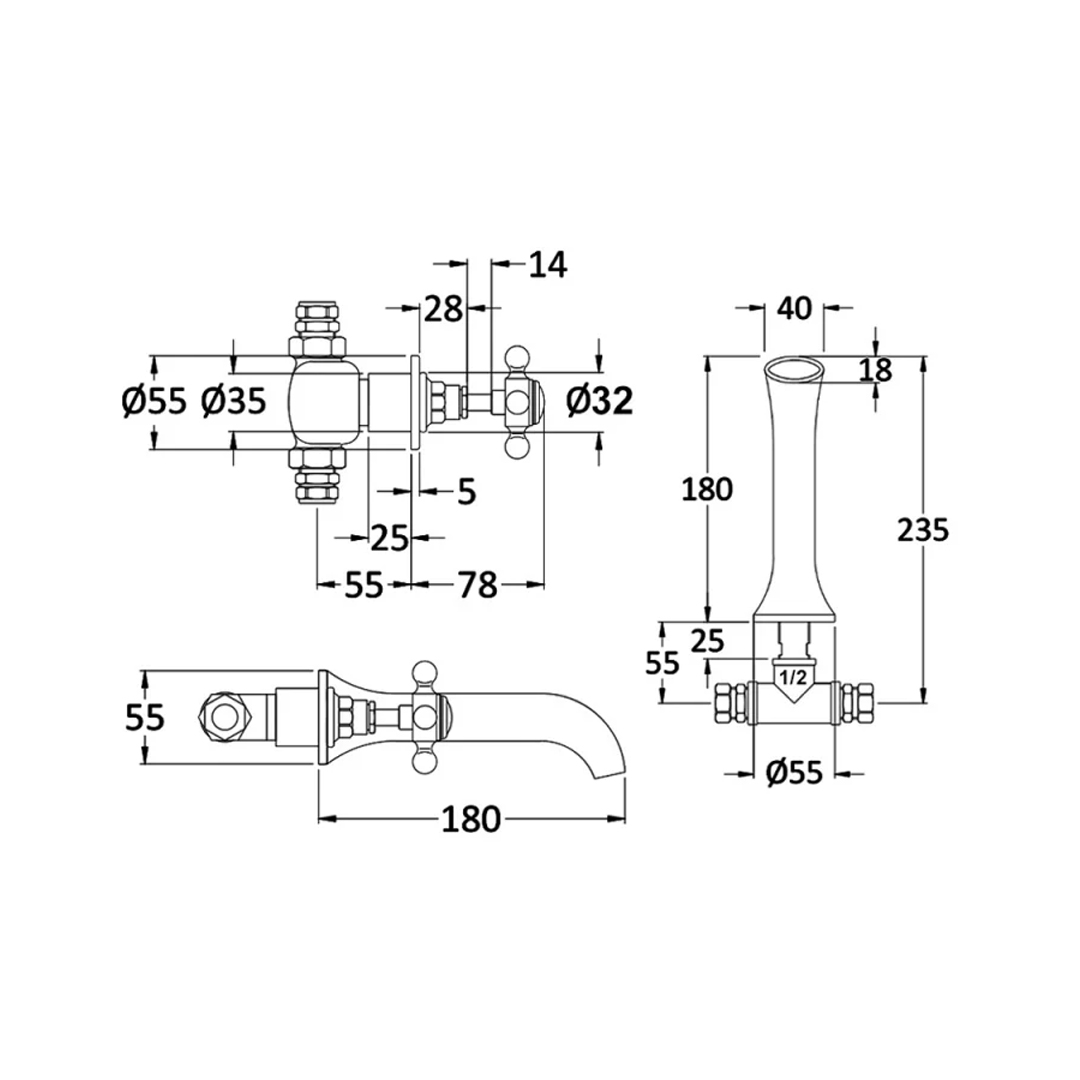 - Impressive wall mounted basin mixer incorporating luxury period design with the latest technology