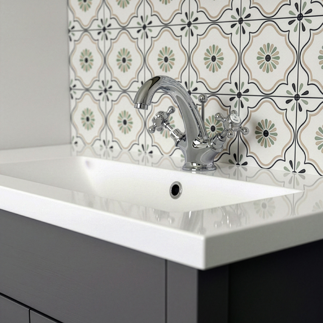 Perfect for pairing with patterned tiles, ceramic basins, or minimalist schemes, the chrome finish ensures this tap complements a wide range of bathroom styles. The mono mixer design allows easy control of water temperature and flow, offering convenience alongside traditional aesthetics.
